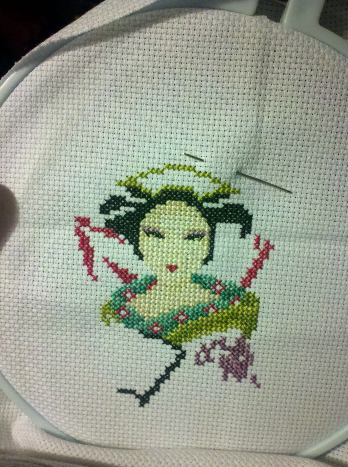 I also got the beads and special thread too. So I should be set for awhile on my stash. I also managed to get some stitching in. I have been working hard on my Three Little Maids project. I also have been working on my RR. I don't want to post a pic because I want it to be a surprise when the person gets it back. But it is an Andy Warhol-esque project. I also put a few stitches into my TW Noah's Ark, but not enough to post a new pic.