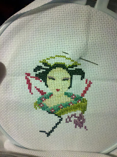 And lastly, the hubs and I went out for dinner last night to PF Changs. We had a coupon for 20% off that was expiring. It was yummy-licious! Then we stopped by Barnes and Noble and I bought a new crosstitch magazine. There was one that had a LadyBug fairy by Joan Elliott that I really wanted, but that was the only thing I liked in the whole magazine so I didn't get that one. I ended up with Cross Stitch Gold which had a Cinderella type design, a Japanese latern which I loved and some other cute designs. I also bought the book, The Hunger Games. I have never read them or really heard of them before, but I saw the preview for the movie and it looked good. So I am starting that book today. That about wraps it up.